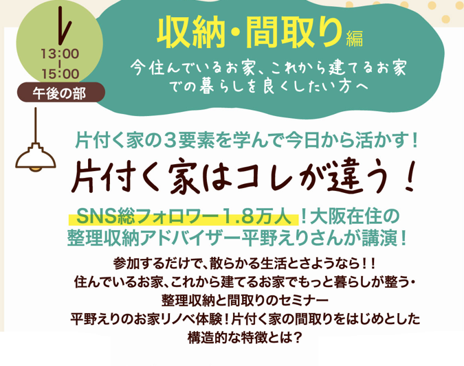 <午後の部>13:00~15:00 収納・間取り編