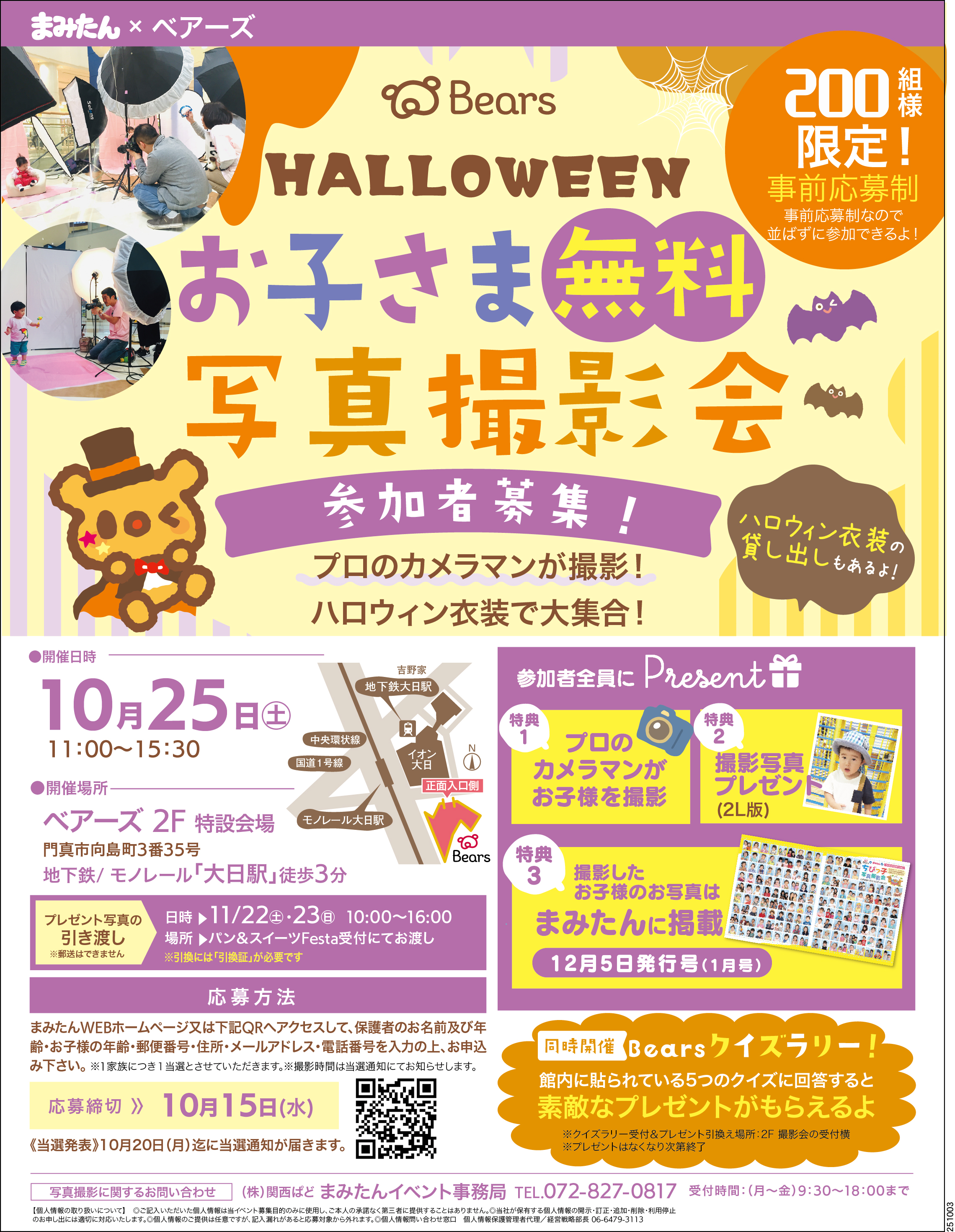 10/25(土)【事前応募制】まみたん×Bears Halloween お子さま無料写真撮影会 参加者募集!