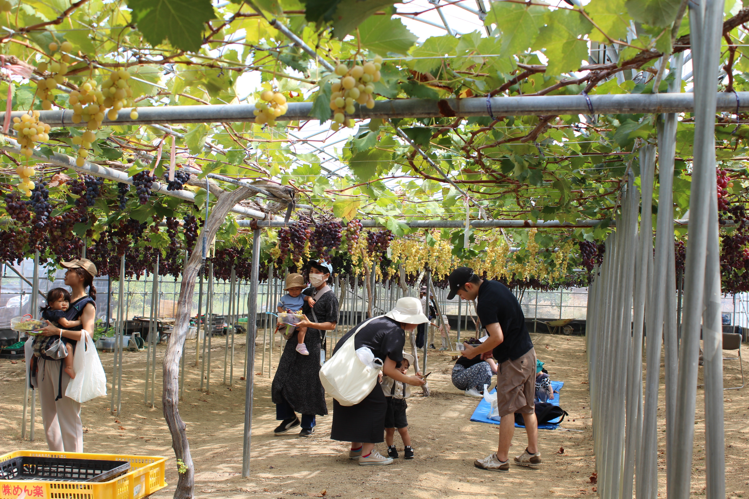 9月3日(水)堺市南区にある新ひのお台幼稚園の自園農園にて、『 Lets'チャレンジ!親子ぶどう狩り』が開催されました! 当日はとてもいい天気で、たくさんのママ、パパとお子さまたちが参加し、にぎやかな1日となりました。