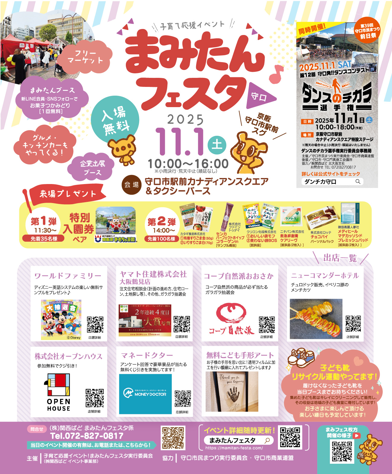 子育て応援イベント!まみたんフェスタ守口 ~2025 ~を守口市駅前カナディアンスクエア&タクシーバースで開催します。子育てファミリー向けのブースや同時開催の「ダンスのチカラ選手権」などコンテンツが盛りだくさん!