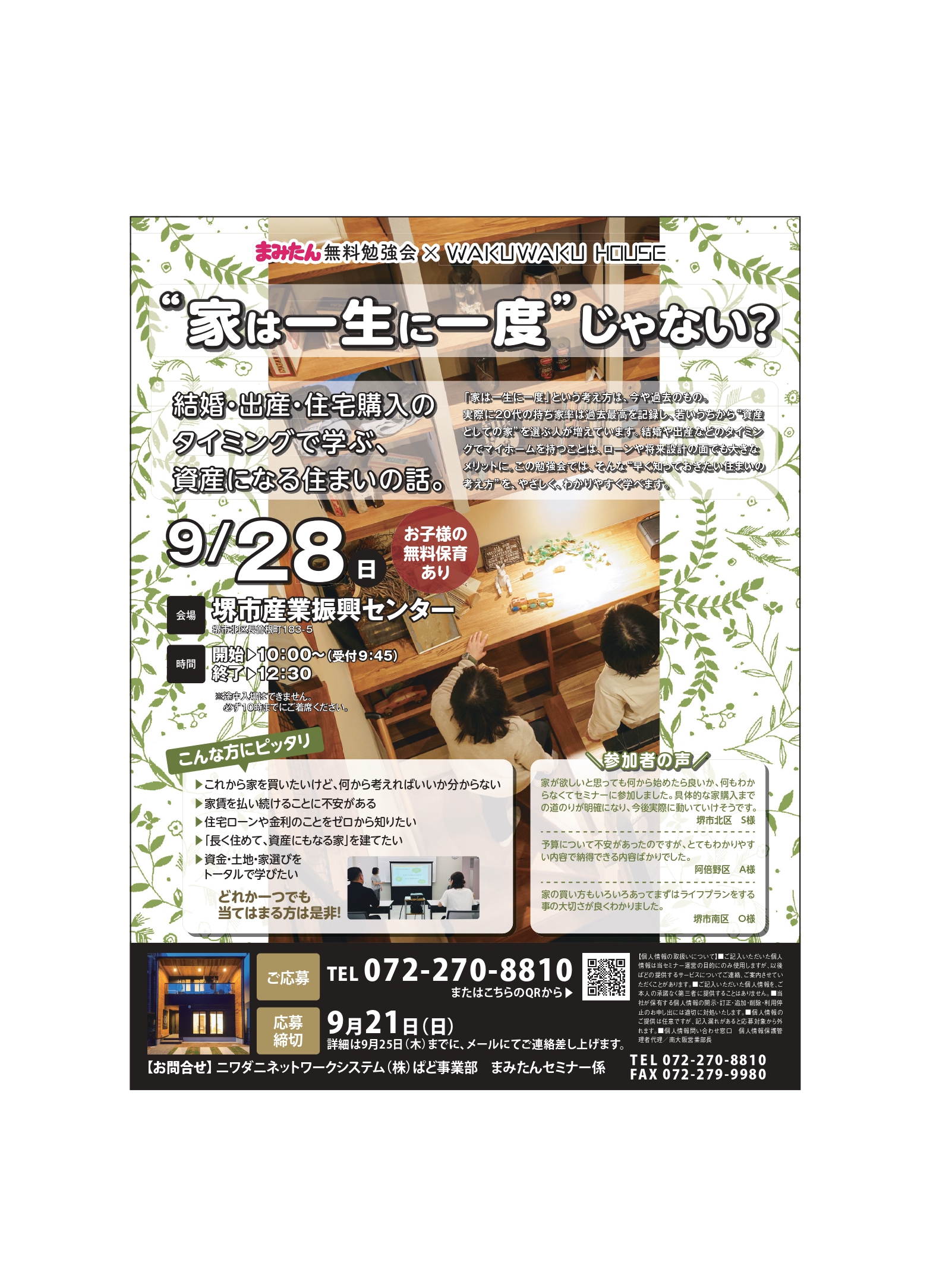 【9/28 堺市北区】自信をもってマイホームを手に入れるためのセミナー