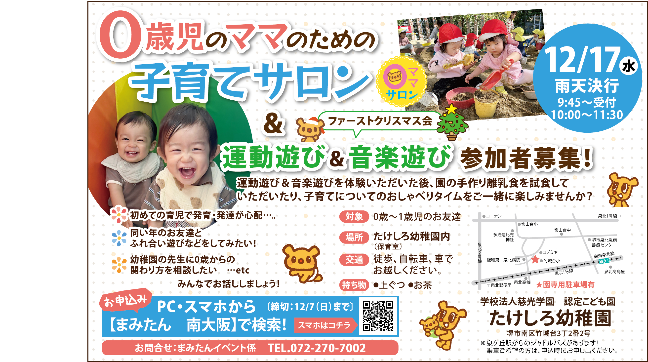 【12月17日開催】0歳児のママのための子育てサロン&運動遊び&音楽遊び!参加者募集!