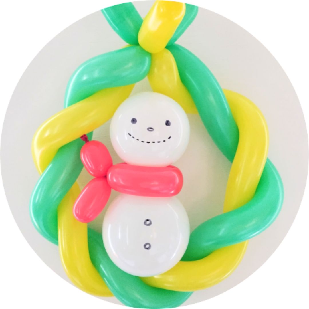 バルーン作家、NANA先生によるバルーンワークショップ。バルーンでかわいいリースと雪だるまを作ろう!