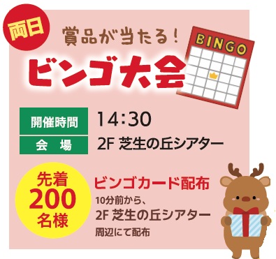【ビンゴカード配布】10分前から、2F芝生の丘シアター周辺にて配布