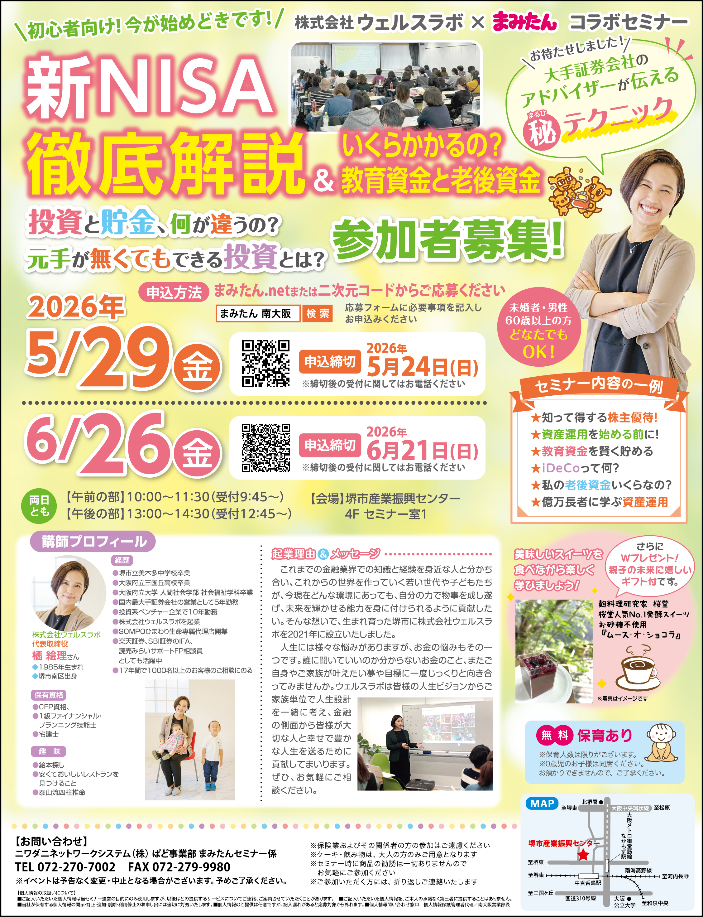 本日は、今話題の初心者向け新NISA徹底解説&私の投資金額大丈夫!まみたん無料セミナーのご紹介です!
