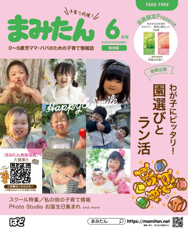 まみたん阪神版の表紙・誌面内を飾ってくれる子どもたちのお写真を募集しています!