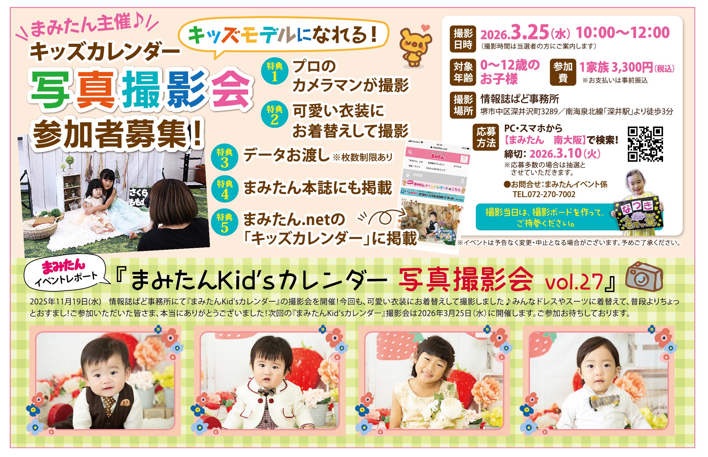 まみたん.netの「キッズカレンダー」のキッズモデルにエントリーしませんか?