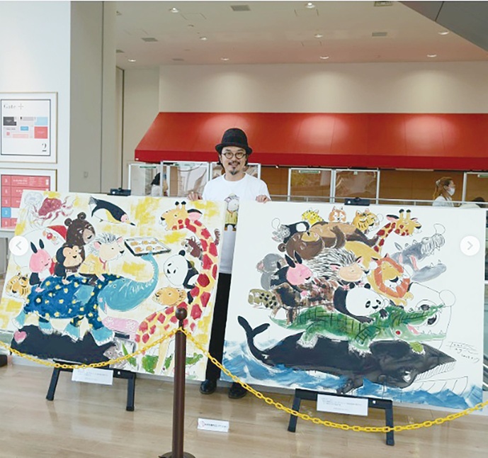 事前に応募してくれた子どもたちの絵が、谷口さんの手で一つの巨大なアートに。リアルタイムで作品が命を宿していく様子は必見です。