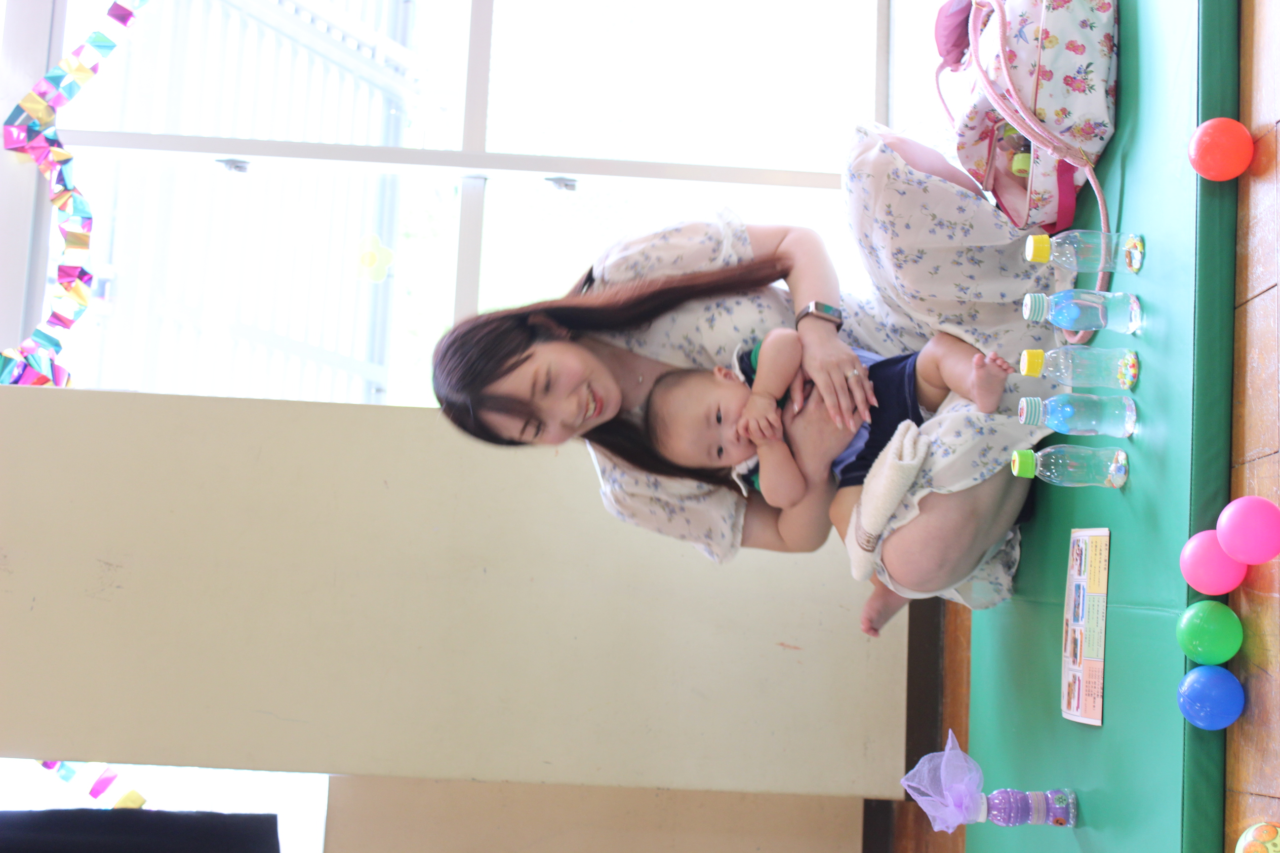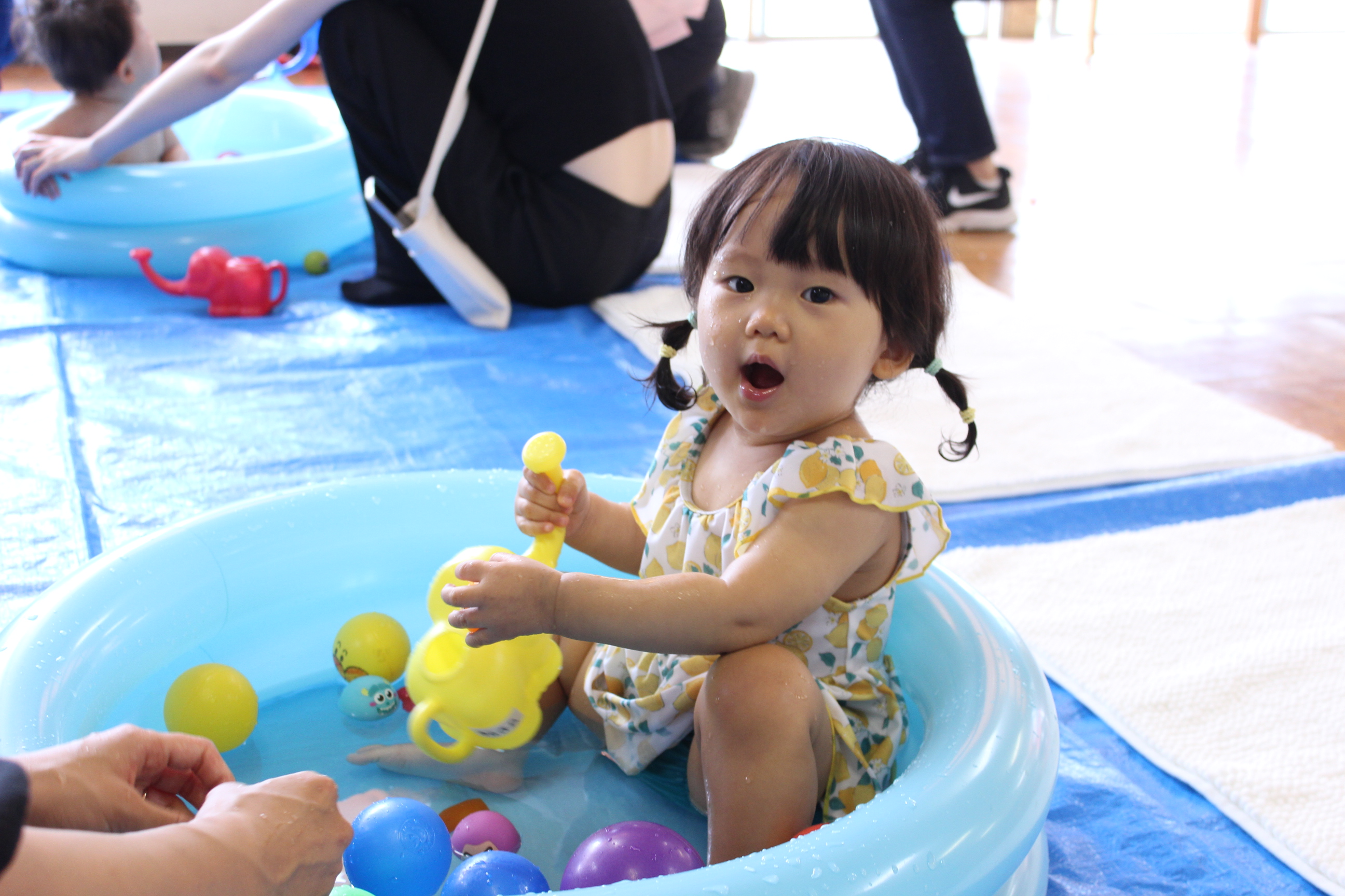 7月18日(金)、堺市南区のみいけだい幼稚園にて、『 0歳児のママのための子育てサロン』を実施しました。プログラムは『水あそび&親子わくわくスキンシップ』です。