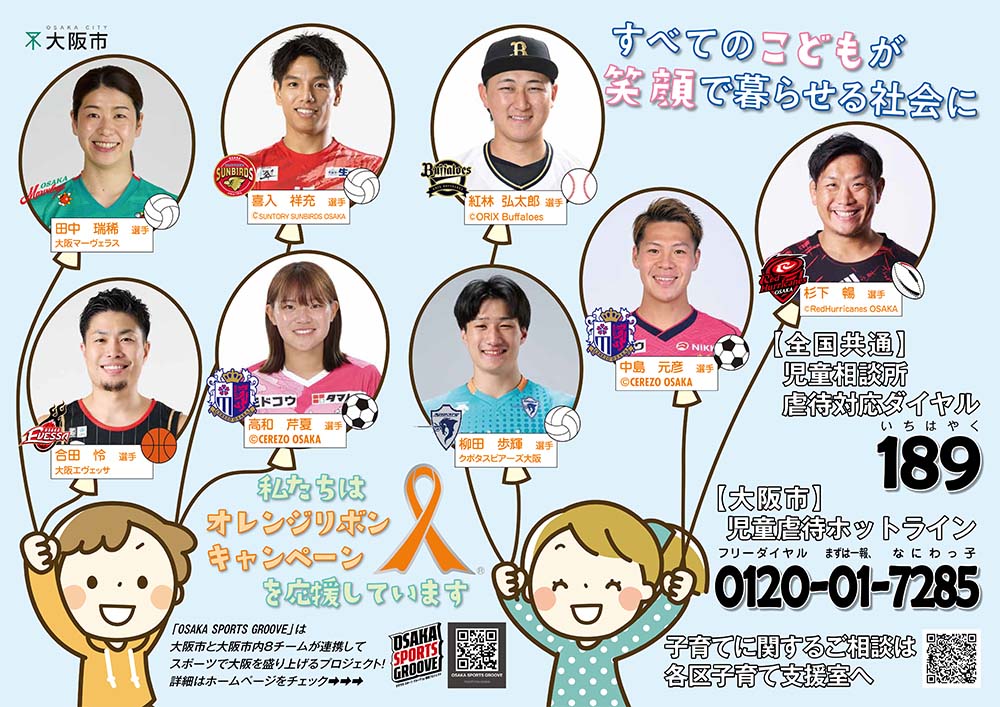 セレッソ大阪、大阪エヴェッサ、オリックス・バファローズ、サントリーサンバーズ大阪、大阪マーヴェラス、クボタスピアーズ大阪、レッドハリケーンズ大阪、セレッソ大阪ヤンマーレディースのご協力のもと、啓発ポスター・ノート・しおりを作成するとともに、ホームゲームにおいて啓発動画の放映や啓発アナウンス、ポスターの掲示、啓発物品の配布・配架を実施