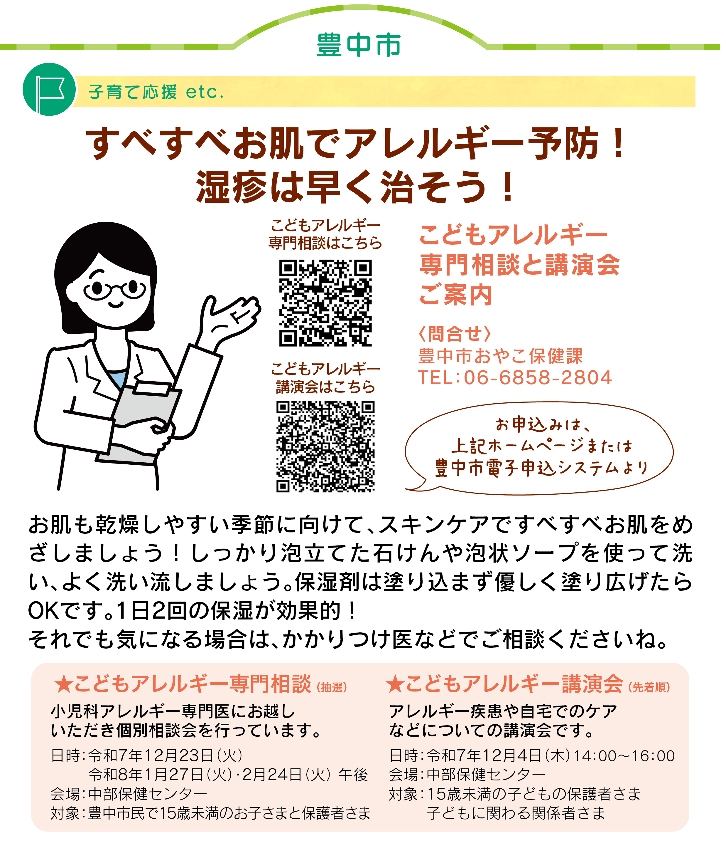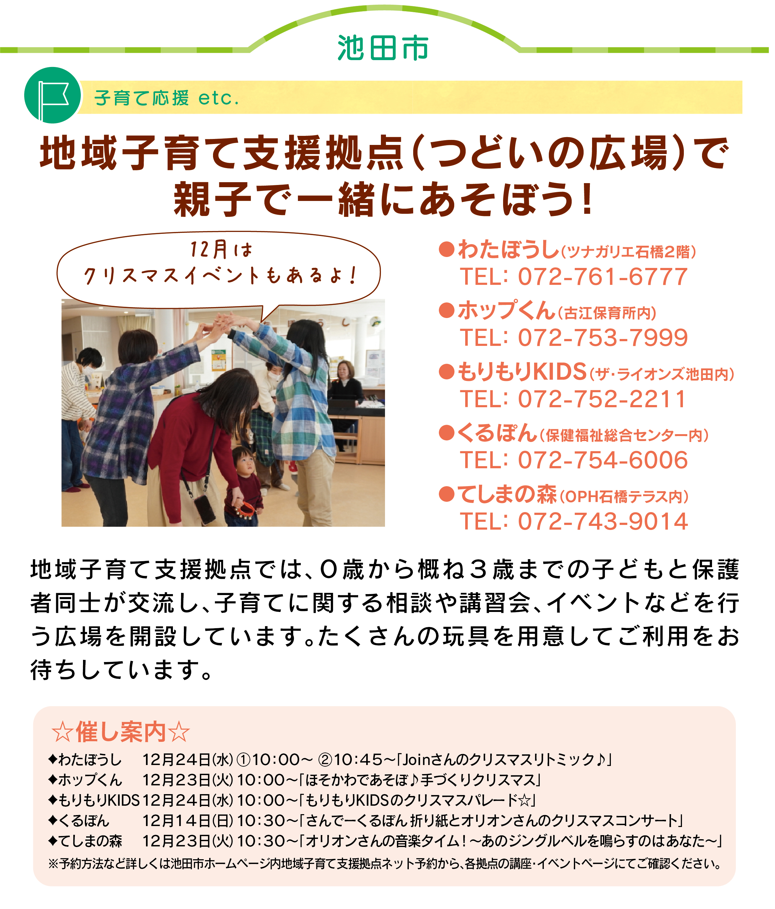 おでかけ 2025.11.24 北摂版|私の街の子育て情報【摂津市・箕面市・高槻市・豊中市・池田市】12月号 優しい街づくりにがんばるステキな人や子育て中の親子が楽しく気軽に集える施設やイベントなどをご紹介します! シェア ツイート お気に入り追加 0 ★まみたん12月号でご紹介 6 件 シェア ツイート お気に入り追加 0 この記事を書いた人 まみたん北摂編集部 関連記事 2025.12.05 子どもがペットと暮らすメリット|ともに育つ・育む! まみたん編集部 2025.12.05 子どものためのインテリアと収納アイデア|安全快適 子育てに適した住まい まみたん編集部 2025.12.05 子どもと共に成長する住宅選びのポイント|安全快適 子育てに適した住まい まみたん編集部 2025.11.20 阪神版|私の街の子育て情報【伊丹市・尼崎市・宝塚市・西宮市・川西市】12月号 まみたん阪神編集部 2025.11.18 親子でつくれるレシピ|家族で思い出づくり!特別な冬の祝祭 まみたん編集部