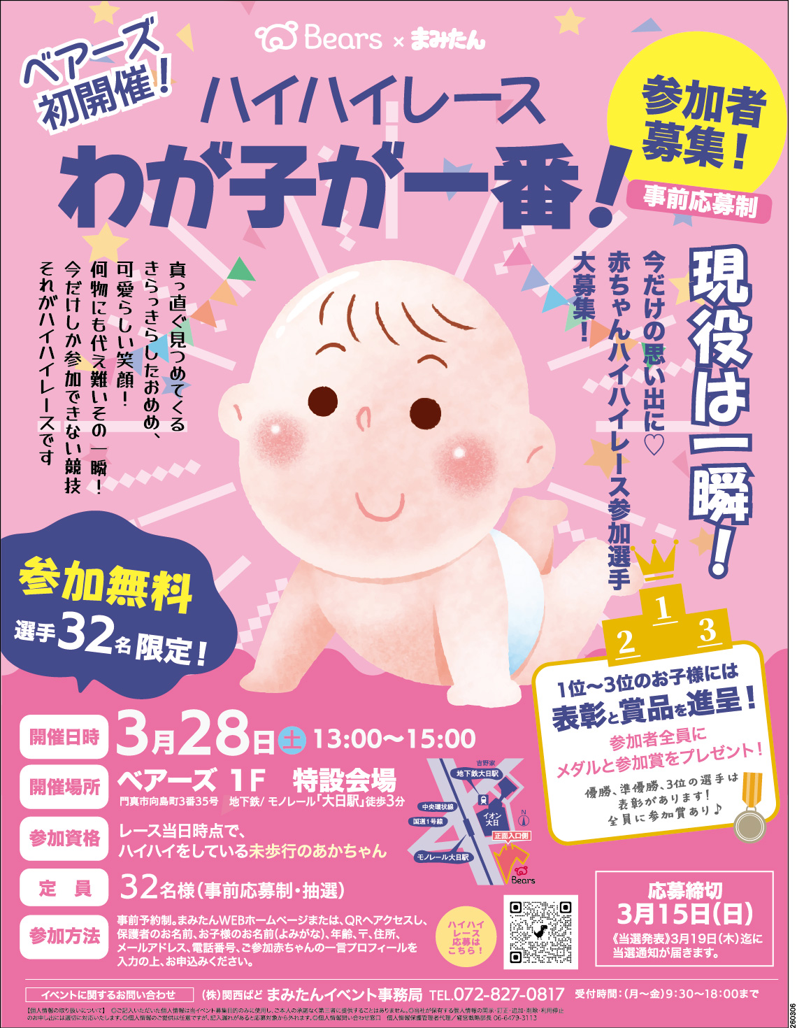 ベアーズ初開催!ハイハイレースわが子が一番!出場赤ちゃん参加選手大募集!