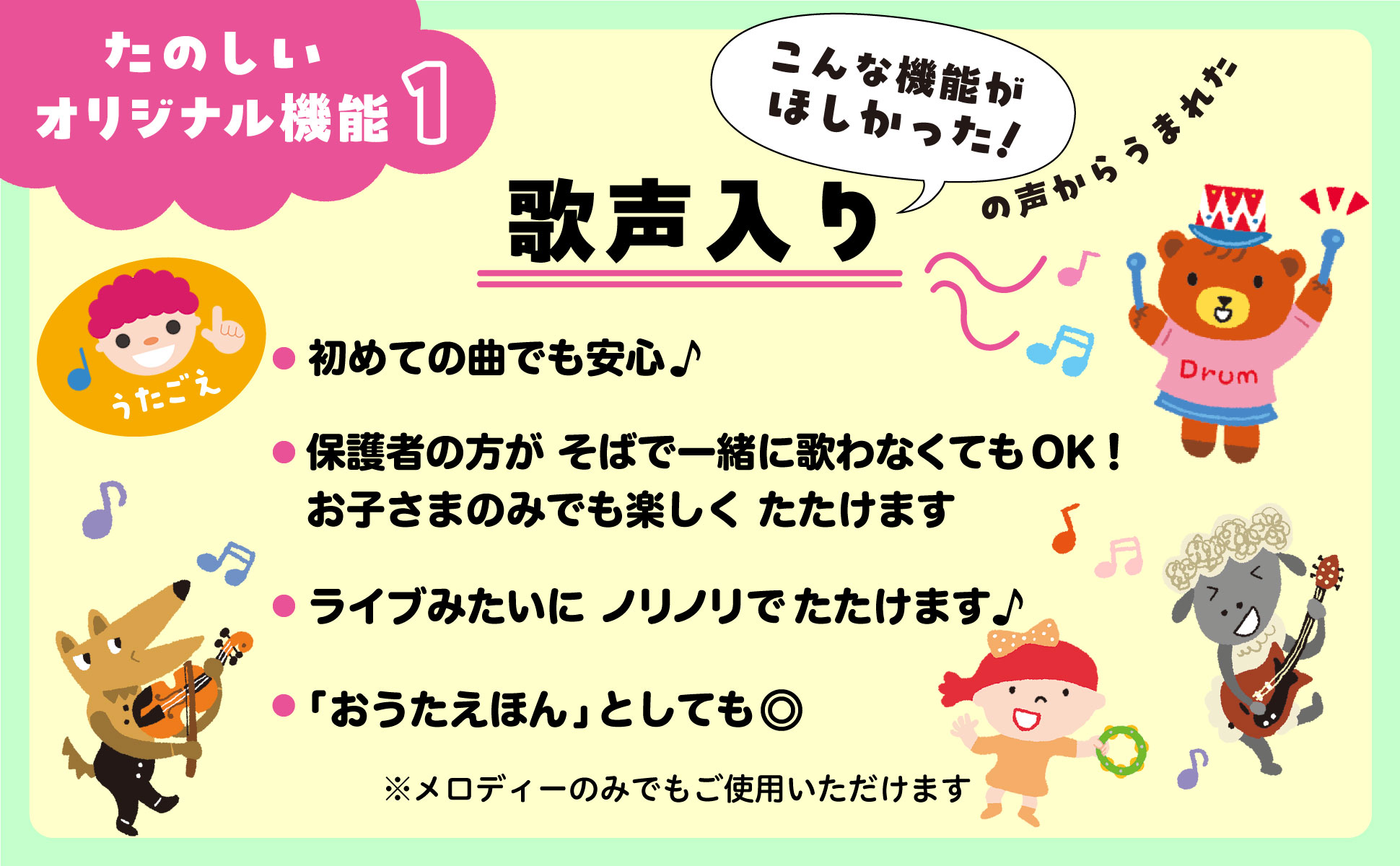 いままでの「たいこえほん」にはない!3大機能つき!
