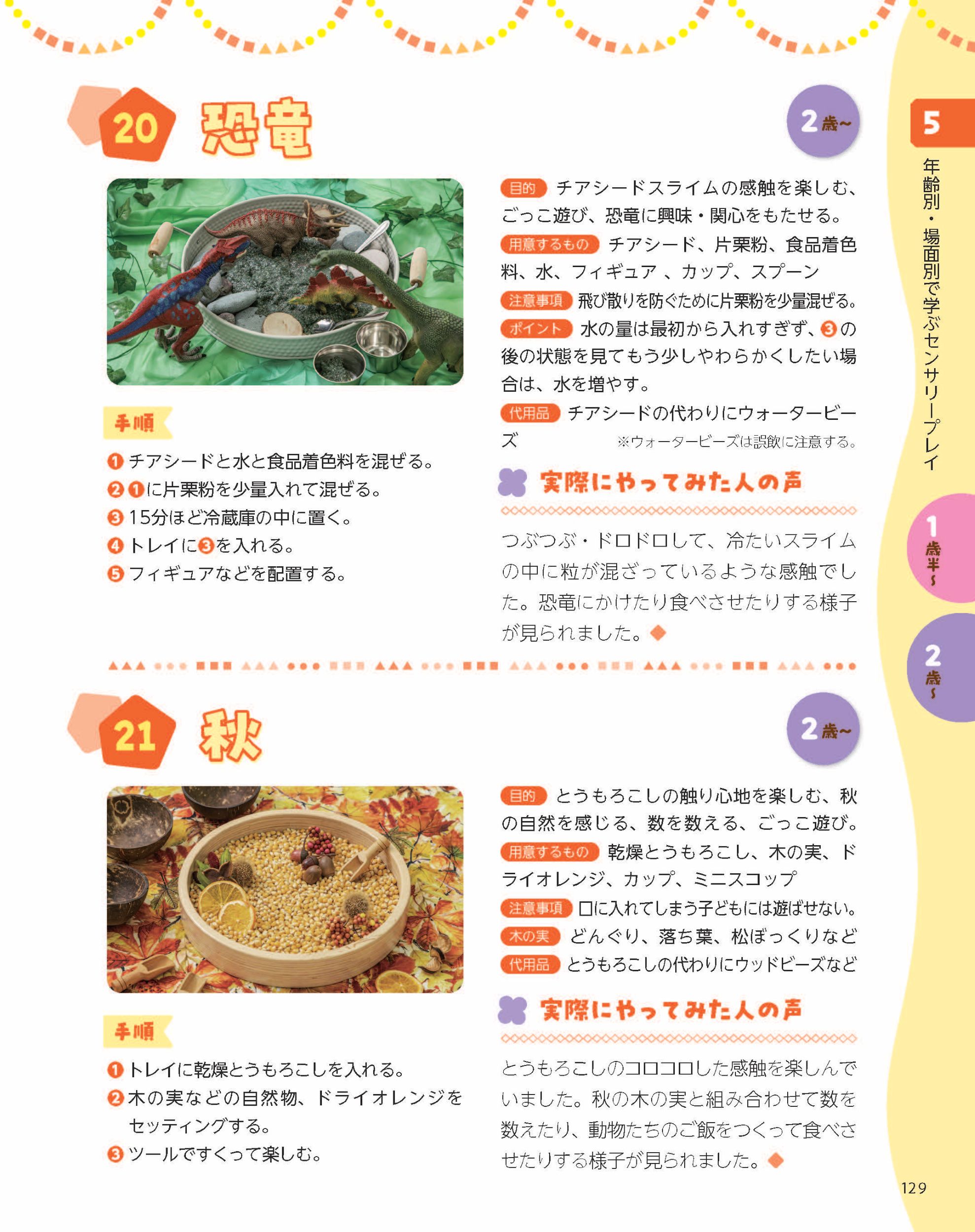 第5章では、そのまま真似して楽しめるセンサリープレイの遊びレシピを27個掲載。