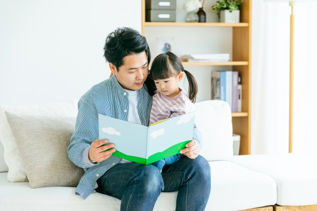 親子で絵本を楽しむ時は、絵本の持ち方や座る場所、読む・聞く姿勢、タイミングなどにこだわる必要はありません。自由にはじめてみましょう。子どもを膝の上に座らせても、一緒に寝転がって読んでも大丈夫。声色をつけてもつけなくても構いません。大切なのは、絵本の読み聞かせを通して、親子がふれあう時間が生まれること。それだけで十分なのです。