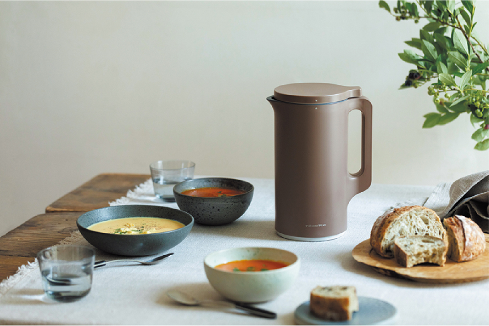 場所を取らないスリムサイズで、食卓でも使いやすいシンプルなデザインなのに、600mlと大容量。コンロや鍋がなくてもスープやカレー、パスタのソースにスムージーなど豊富なレシピがつくれる、ママの強い味方です。