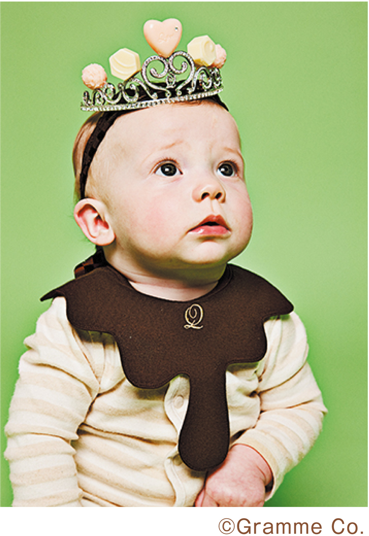 とろ~りとろけるデザインが特徴的な、メルトビブシリーズの「チョコレート」フレーバー。ゴールド刺繍のロゴがワンポイント。デリケートな赤ちゃんの肌に優しいコットン素材で、肌触りが気持ちいい。