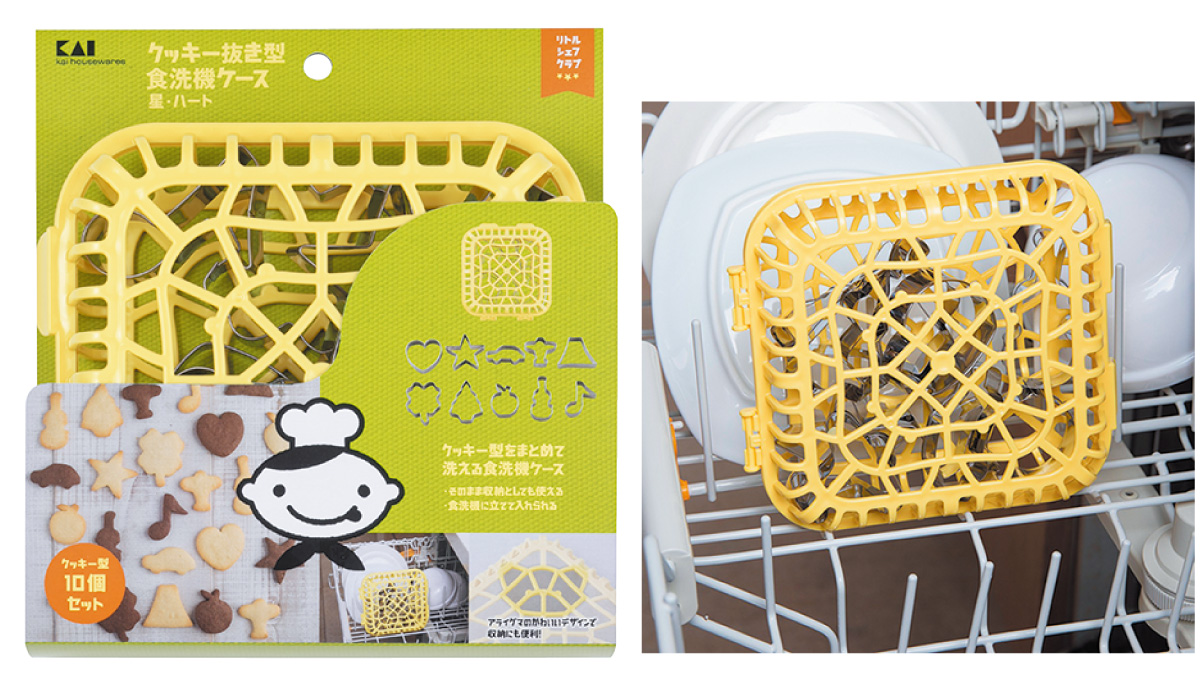 ハートや星、音符や飛行機、クローバーなど10種類のクッキー型とケースがセットに!ケースに入れて食洗機でそのまま洗うことができるので、水圧で飛ばされる心配もなく、きれいに洗えて便利。