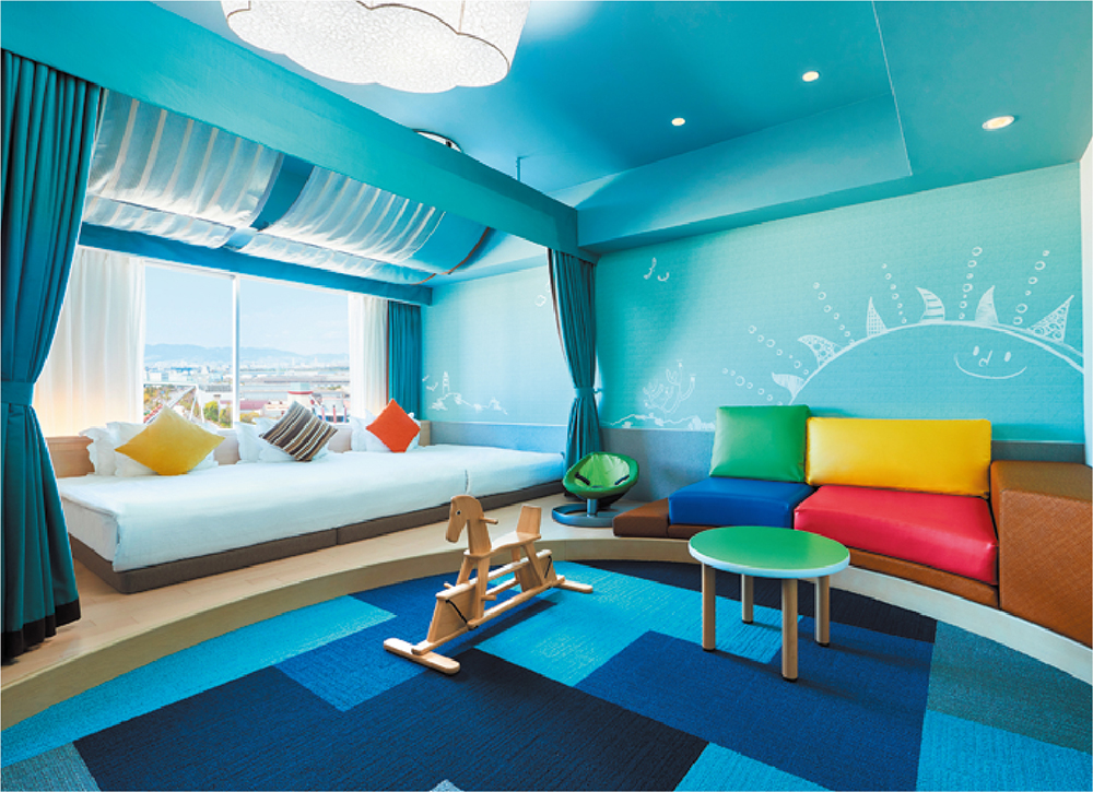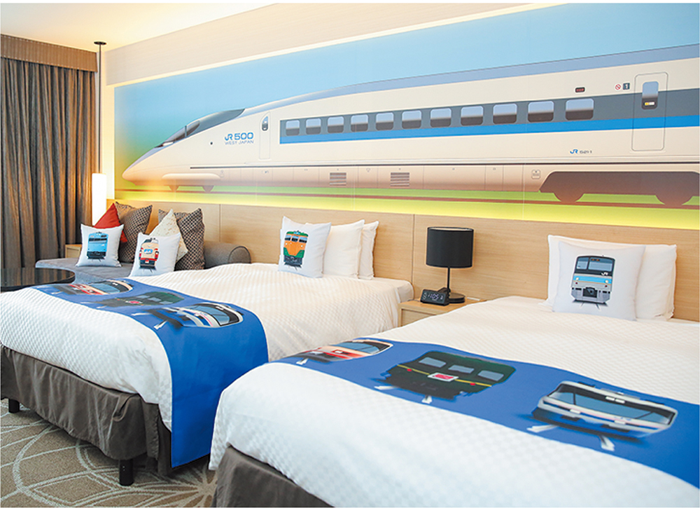 鉄道好きなキッズはもちろん、大人も一緒に夢中になれる1日1室限定のコンセプトルーム。様々な車両が描かれたベッドスローやクッションが客室を彩り、壁紙には探検気分が味わえる路線図が。心をくすぐる仕掛けがあちこちに散りばめられている。