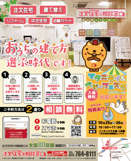 注文住宅の相談窓口 イズミヤSC昆陽店 - 注文住宅の相談窓口 イズミヤSC昆陽店の公式ホームページです。注文住宅の相談窓口は、家づくりに関するさまざまな悩みを解決するために誕生しました。お家に関する知識やネットワークを持った専門アドバイザーがお客さまの家づくりをサポート。